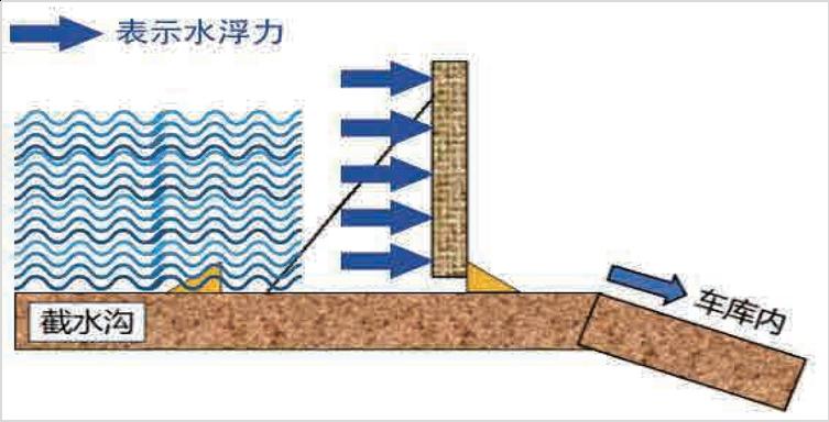 当洪水来袭时,由于挡水板正义密度小于水,挡水板在迎面洪水浮力作用下,自动翻转成直立状态而挡住洪水。挡水过程无需电力驱动。